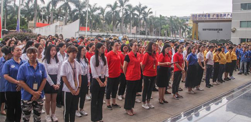 7:40分,民興電纜的全體成員就在辦公樓廣場整齊列隊(duì),以精神飽滿狀態(tài)慶祝黨的生日。