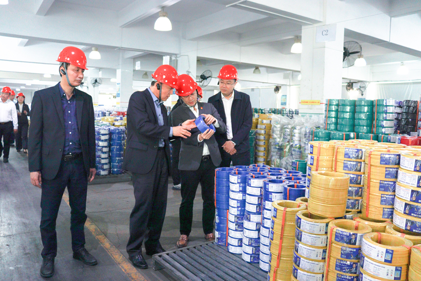 調(diào)研指導(dǎo)組一行在民興電纜廠區(qū)參觀