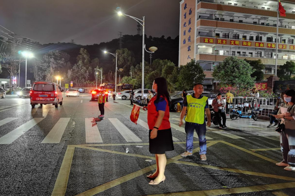 志愿者分隊隊員現(xiàn)場引導(dǎo)車輛有序通行